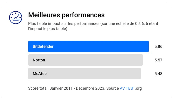 Bitdefender est en tête des tests comparatifs réalisés par AV Test et AV Comparatives depuis 10 ans, tant sur les taux de détection que sur la prise de ressources ou les faux positifs.