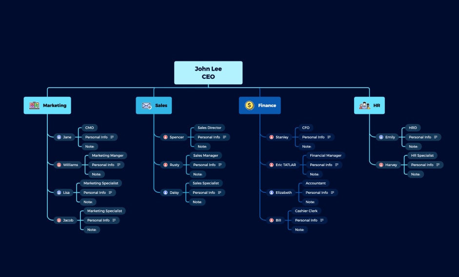 Passez moins de temps à créer une carte heuristique de qualité ; notre algorithme intelligent s’en charge. Des algorithmes sont utilisés partout pour choisir la meilleure couleur pour chaque détail de votre carte mentale. C’est un système dynamique et puissant.